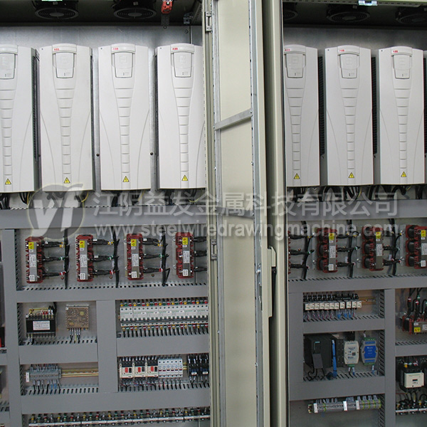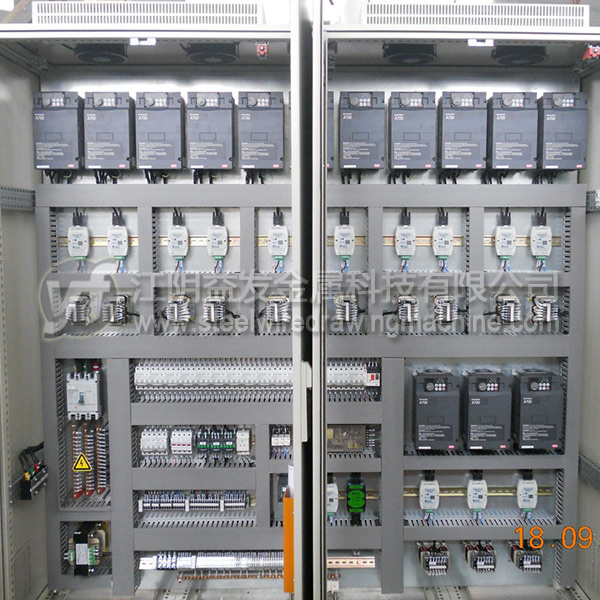 14、交流變頻直線式拉絲機(jī)電氣控制系統(tǒng):本系統(tǒng)采用變頻器調(diào)速,PLC程序控制器集控的方式,實(shí)現(xiàn)數(shù)字化自動(dòng)化控制。機(jī)臺(tái)上每個(gè)頭都有啟動(dòng)、停止、點(diǎn)動(dòng)按鈕、張力氣壓調(diào)節(jié);機(jī)臺(tái)前緊急停車?yán)K。觸摸屏上有速度顯示與調(diào)速,重量或者長度設(shè)定或解除。運(yùn)行機(jī)臺(tái)號(hào),運(yùn)行電流(觀察電流大小可以清晰知道模具磨損狀態(tài)),運(yùn)行頻率(觀察頻率大小可以知道實(shí)際*大工作速度),每個(gè)頭的功率。觸摸屏上輸入實(shí)際運(yùn)行的模具,可以直觀的顯示每道次的減面率,避免不合理的拉拔,通過觀察電流的波動(dòng)可以發(fā)現(xiàn)并調(diào)整損壞的模具避免生產(chǎn)廢絲!系統(tǒng)還具備一些特色功能:穿絲點(diǎn)動(dòng)永不斷絲功能,高速運(yùn)行中斷絲自動(dòng)緊急停車功能,遠(yuǎn)程監(jiān)控檢修功能。所以高自動(dòng)化智能化的電氣控制系統(tǒng)是高效低成本高質(zhì)量拉拔低碳鋼絲的**技術(shù)。