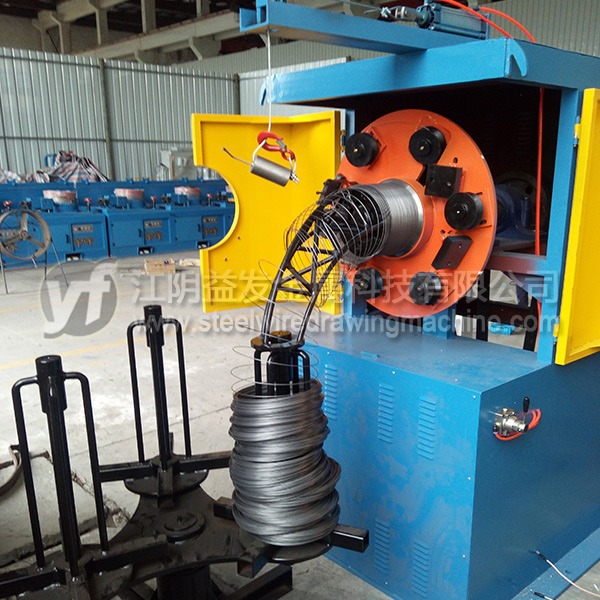 象鼻式收線冷卻方式分為自冷卻與水冷卻兩種,收線方式有普通與梅花型兩種。通常低碳鋼絲采用自冷卻普通型收線,速度≤30M/S,高碳鋼絲與彈簧鋼絲應該采用梅花型水冷卻,收線速度≤12M/S